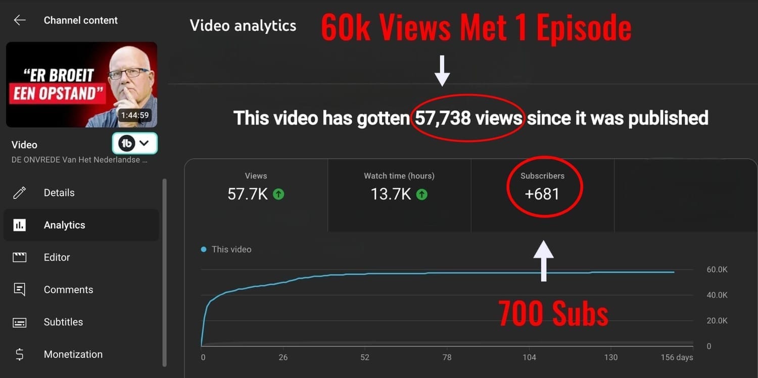 → 500+ abonnees dat loyaal jouw afleveringen volgen, delen en bekijken