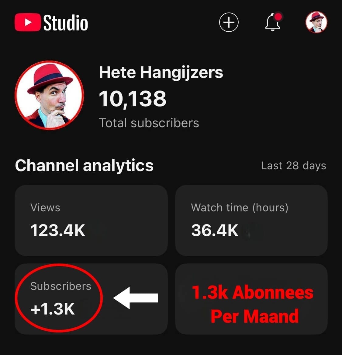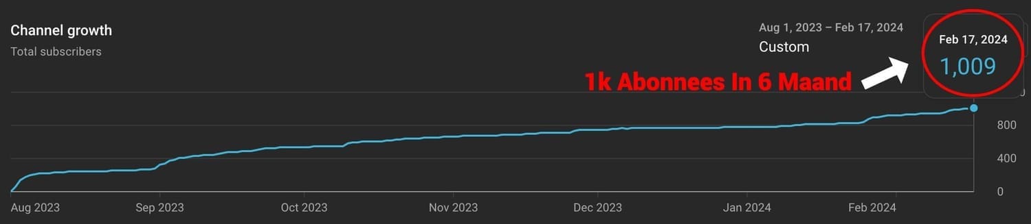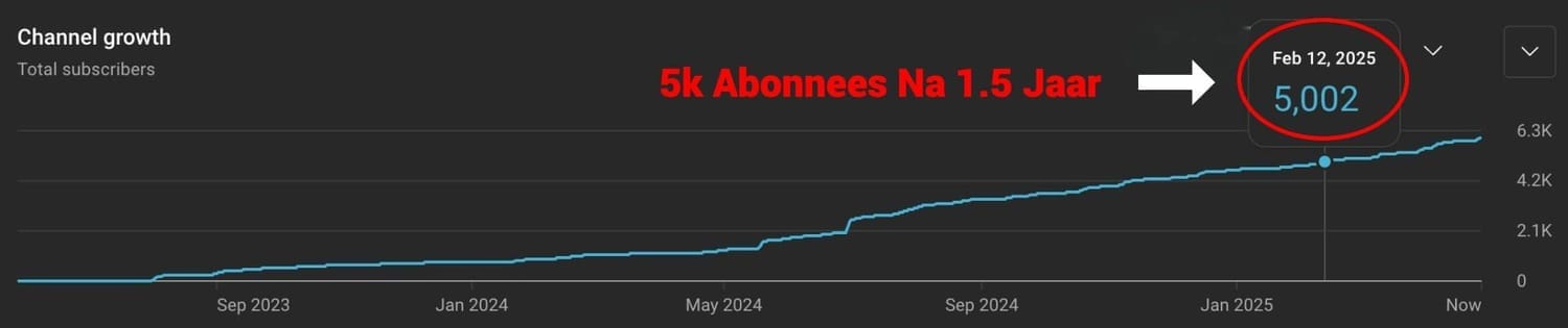 500 YouTube subs in eerste 3 maand, 3000 na een jaar, 5000 na anderhalf jaar